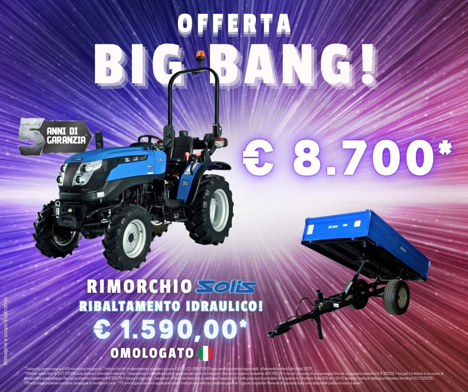 PROMO TRATTORE SOLIS S26XL + CON RIMORCHIO OMOLOGATO ITALIA TS-1000